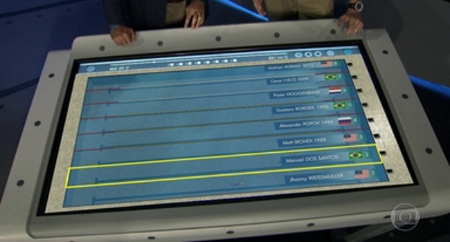 La cadena brasileña O Globo presentó oficialmente su mesa táctica de natación, un gran adelanto tecnológico que les permite a los usuarios elegir a algunos de los principales nadadores del mundo y ponerlos a competir simulando una carrera real.