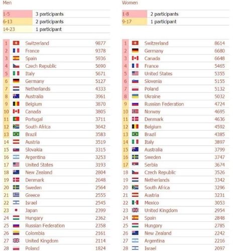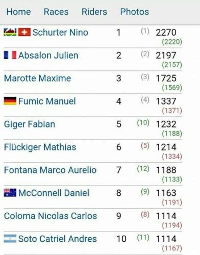 En cuanto al ranking por naciones Argentina finalizó 16º con 3253 por delante de Estados Unidos, Dinamarca, Colombia y Reino Unido, pero no pudo alcanzar los dos lugares que buscaba la Federación Argentina de Ciclismo de Montaña, el último país en conseguir esos dos boletos fue Brasil, 13º con 3583 puntos.
