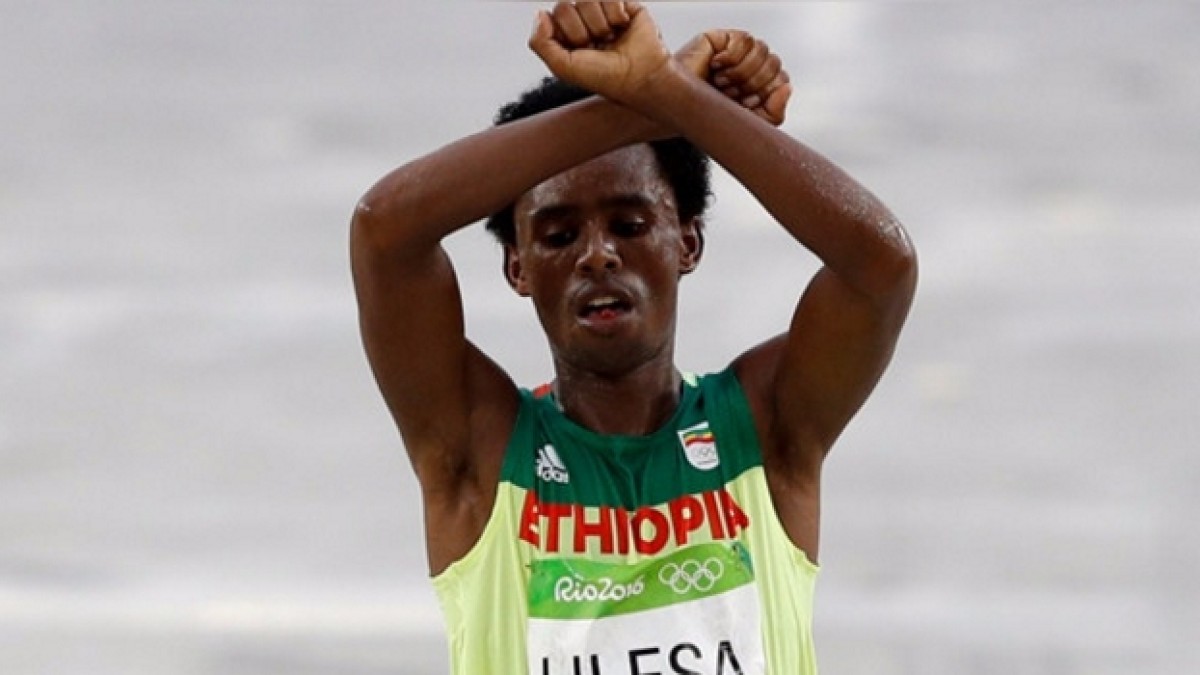 Sus brazos cruzados por encima de su cabeza tenían un único sentido. Lilesa quiso protestar contra las vulneraciones que sufren los oromo, una de las etnias que compone a Etiopía.