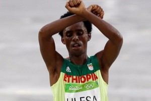 "Fue una protesta, porque soy oromo, y en Etiopía los oromo somos reprimidos por el Gobierno. Nos matan y nos encarcelan, somos sospechosos por el simple hecho de ser oromo. Tengo parientes presos y llevaré la protesta de mi gente allí adonde vaya. En Etiopía hay 15 millones de oromo y el Gobierno nos obliga a dejar nuestras tierras, nos encarcela, nos mata. Yo les pido que ustedes, los periodistas, que hablen de la democracia que no existe en mi país, y de los intereses económicos que apoyan la represión de los oromo", dijo Lilesa, luego de agregar que tras esto corría riesgo de ser encarcelado o incluso sufrir consecuencias más graves.