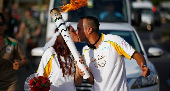 El viaje de la Antorcha Olímpica desde Grecia hasta Brasil, por Río 2016, trae consigo anécdotas muy curiosas. Una de ellas, fue la protagonizada por el relevista Romeu Matos quien cuando su novia Samya se disponía a entregarle la antorcha, él la sorprendió de rodillas y con una propuesta de casamiento.