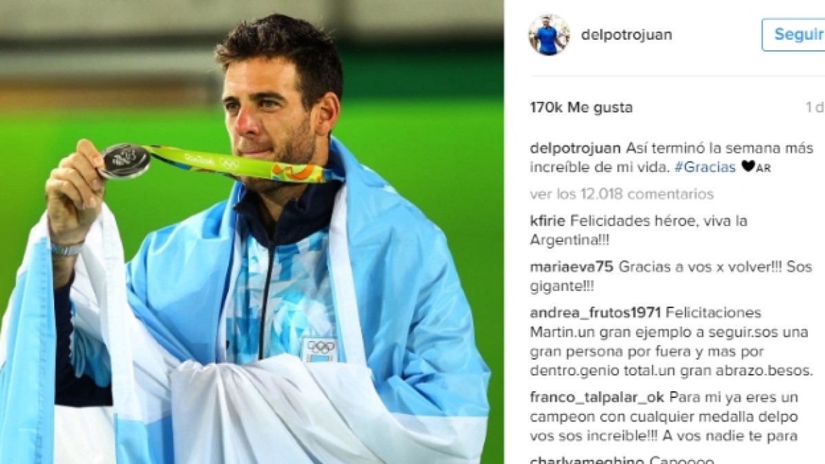 Del Potro junto a Phelps, Bolt y Neymar entre lo más destacado de Instagram en Río 2016