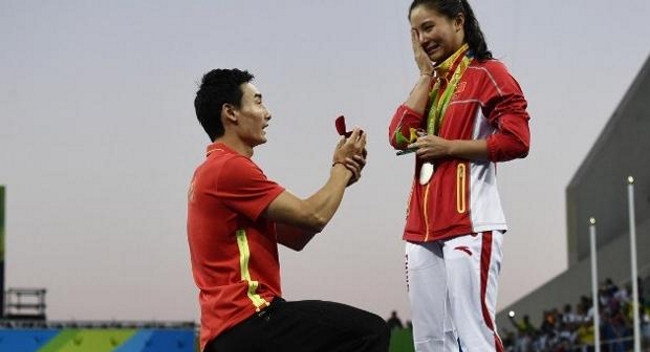 He Zi, campeona olímpica también en Londres 2012, aceptó la propuesta de su futuro esposo, quien se arrodilló y le pidió casamiento ante la vista de miles de personas.