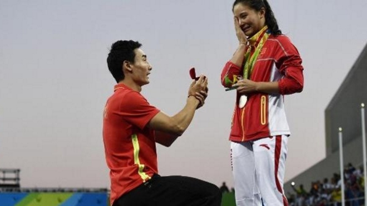 He Zi, campeona olímpica también en Londres 2012, aceptó la propuesta de su futuro esposo, quien se arrodilló y le pidió casamiento ante la vista de miles de personas.