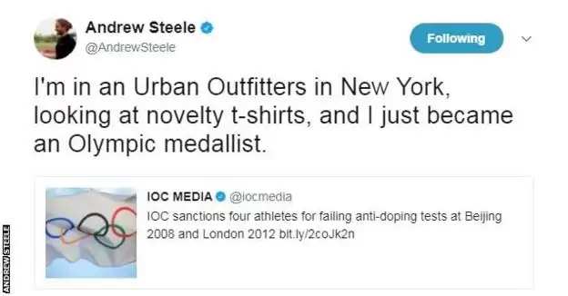 No obstante, ocho años más tarde, pruebas de laboratorio corroboran sustancias prohibidas dentro del organismo de uno de los competidores que se quedó con la medalla de bronce, por lo cual su logro fue desmerecido y Steele junto con el resto de su equipo, convertidos en medallistas olímpicos.
