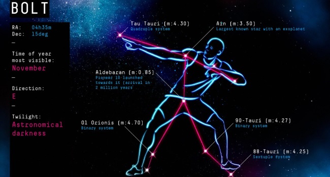 En la Feria Científica Big Bang Fairm, la Sociedad Astronómica de la Universidad de Birmingham, le puso el nombre de Usain Bolt a una constelación.