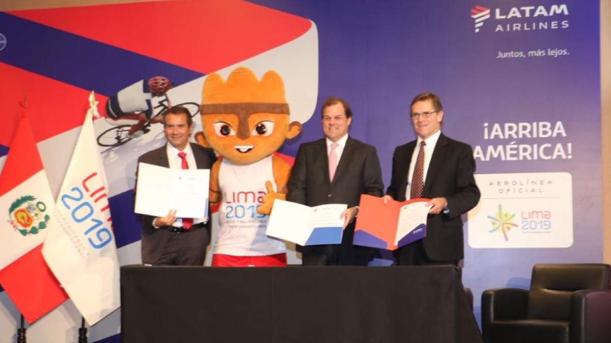 El convenio fue firmado hoy entre los presidentes de Panam Sports, Neven Ilic; de Lima 2019, Carlos Neuhaus Tudela; y el Gerente General de LATAM Airlines Perú, Manuel van Oordt.