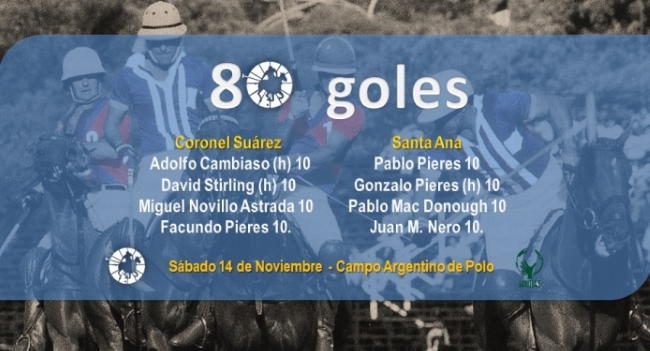 Coronel Suárez: Adolfo Cambiaso (h) 10, David Stirling (h) 10, Miguel Novillo Astrada 10 y Facundo Pieres 10. Total: 40.