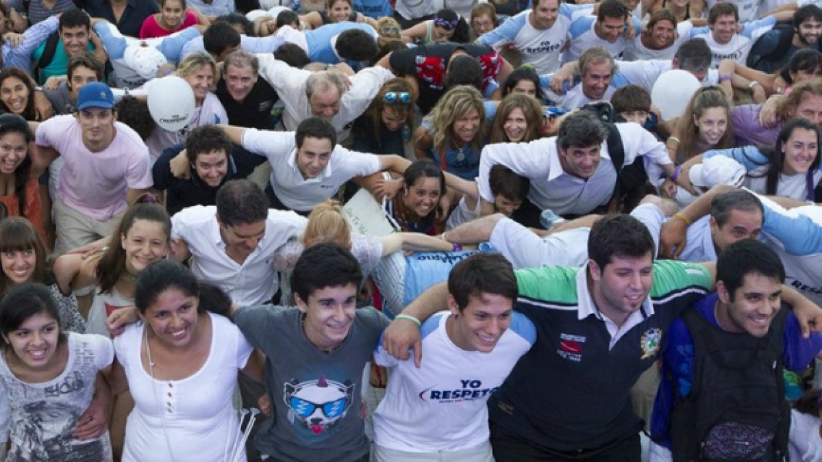 Este lunes 16 de diciembre en la Plaza San Martín, la Fundación Rugby Sin Fronteras hizo el scrum por la paz más grande del mundo bajo el lema "Argentina la comunidad 'Yo Respeto' empuja por vos". Gente con la sonrisa y la ilusión en la cara venida de los cuatro puntos cardinales de nuestro país -y muchos del extranjero también- se abrazaron junto a Pumas, artistas, periodistas y los miembros de la fundación Rugby Sin Fronteras, y a la voz de su líder y presidente, el ex rugbier Juan Bautista Segonds, avanzaron metafóricamente hasta la meta deseada: El "Yo Respeto", la paz y Argentina como sentimiento.