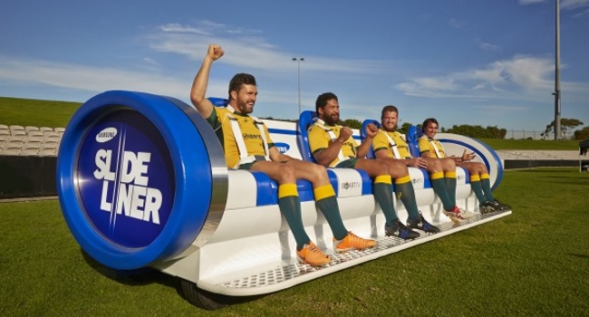 El próximo 16 de agosto se enfrentarán Australia y Nueva Zelanda en un nuevo inicio del Rugby Championship y Samsung presentará sus flamantes SlideLiner, asientos móviles que recorrerán los laterales del campo de juego ofreciéndole a los fanáticos una experiencia única.
