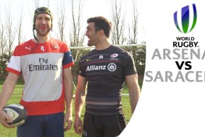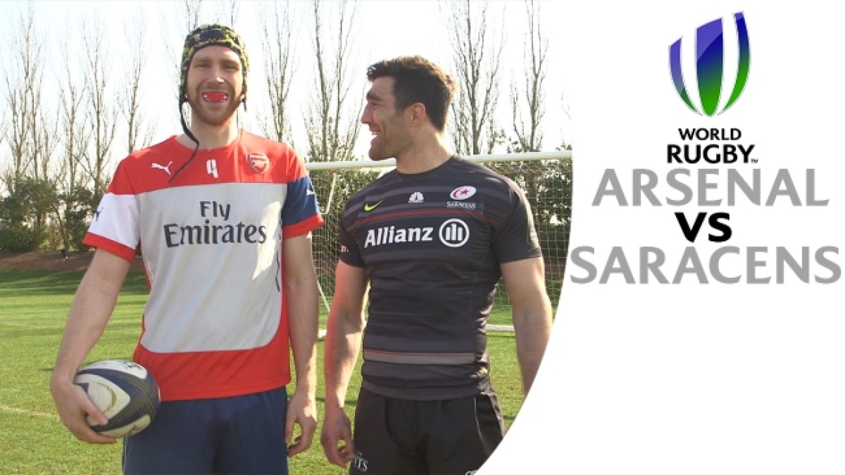 En una acción que se enmarca en una activación previa a la Rugby World Cup 2015, a menos de 180 días de la competencia, los jugadores del Arsenal fueron desafiados junto a los del Saracens por World Rugby a intercambiar deportes. Así, los primeros tuvieron que demostrar sus habilidades en el rugby mientras que los segundos en el fútbol.