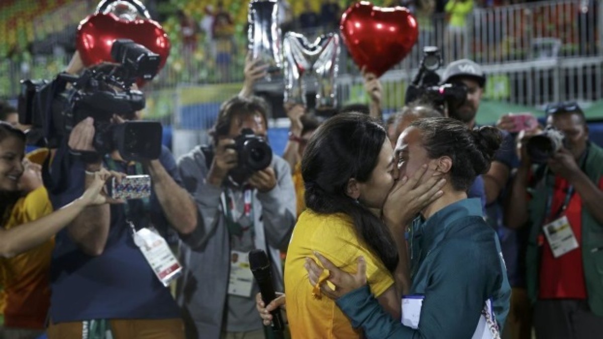Marjorie Enya, encargada del estadio de rugby en Deodoro, sorprendió a todos cuando en la ceremonia de premiación del rugby femenino en Río 2016, le propuso casamiento a Izzy Cerullo, jugadora de Brasil.