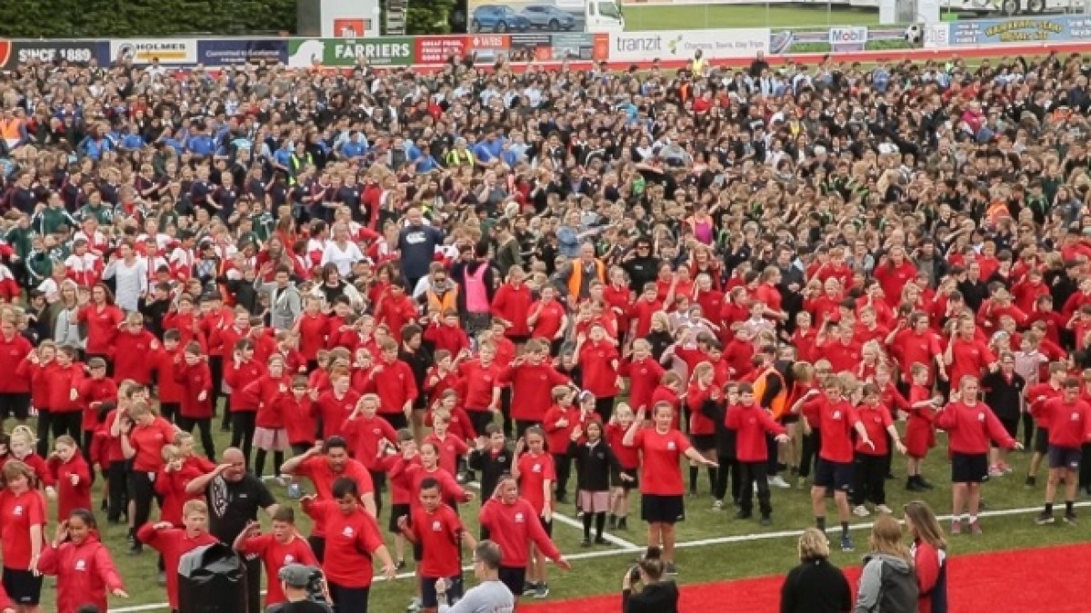 Siete mil alumnos de escuelas neozelandesas realizaron en un estadio de Wellington, el haka más grande del mundo. Ante la presencia de directivos del Libro Guinness, superaron la marca anterior de 4.028 participantes.