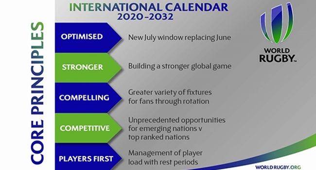 Habiendo sido una prioridad para el Presidente de World Rugby Bill Beaumont tras su elección en mayo de 2016, el optimizado calendario internacional 2020-32 marca nuevos estándares al priorizar los períodos de descanso, promoviendo equidad para las potencias emergentes del deporte, armonizando la relación entre el rugby internacional y el doméstico.