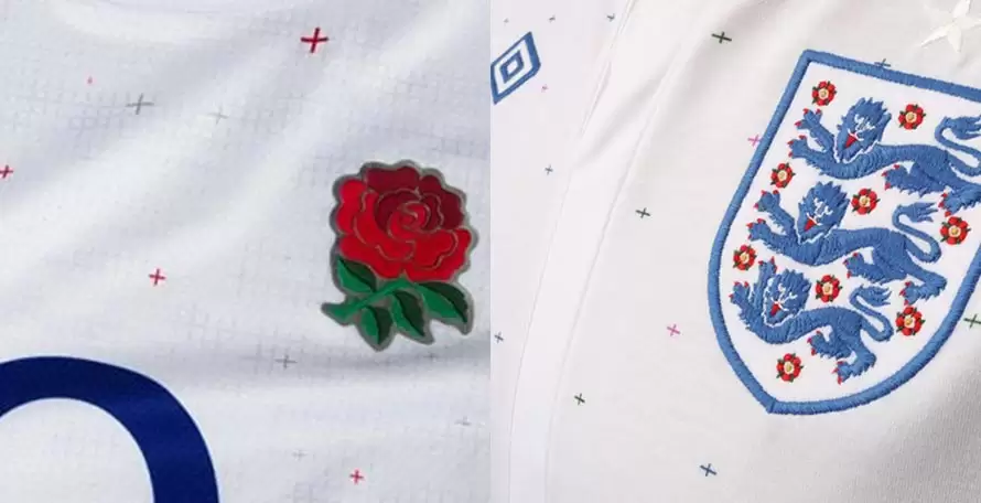 Las semejanzas están a la vista de los detallistas, es que el motivo de “cruces” en su parte superior hace que ambos modelos reflejen cierta similitud. Sin embargo, Canterbury no hizo comentarios al respecto, y solo se limitó a describir el nuevo lanzamiento, afirmando que el diseño de la camiseta se inspira en el “ruido blanco”, creado por el sonido de los aficionados de Inglaterra, alentando a su equipo. La intención fue combinar texturas y colores, dándole importancia al platino y titanio en representación de la “fuerza de esos metales”.