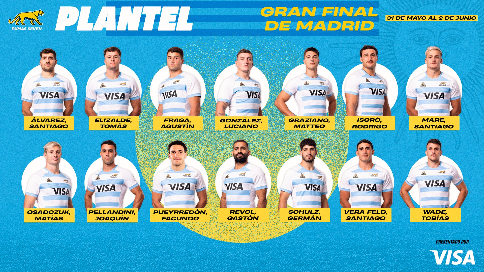 El plantel de los Pumas 7s para la final en Madrid