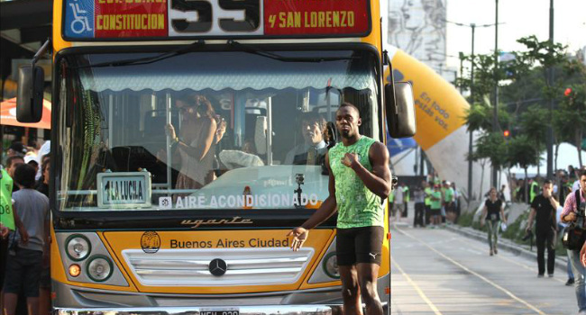 Allí, Bolt enfrentó a un colectivo de la línea 59 en el Metrobus, y como de costumbre, en una carrera de 80 metros, él ganó con facilidad. Más tarde, Usain Bolt se impuso en un duelo ante sus compatriotas Mario Forsythe, Kimmari Roach, y Daniel Bailey, de Antigua y Barbuda