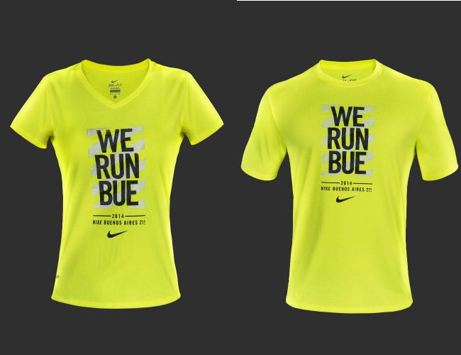 La remera oficial para esta We Run Buenos Aires 21K se identifica por el color amarillo vibrante, con tecnología Nike Dri Fit, que ayuda a evaporar la transpiración y mantener el cuerpo seco y fresco.