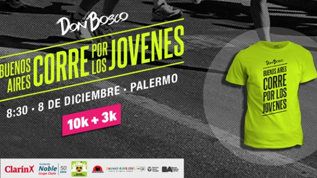El 8 de diciembre de 2016 a las 08:30 de la mañana se realizará la primer carrera BUENOS AIRES CORRE POR LOS JOVENES en los Bosques de Palermo (Av. Figueroa Alcorta y Av. Sarmiento) a favor del crecimiento de los jóvenes a través del deporte y la educación. La carrera es a beneficio de la obra de Don Bosco que ya lleva 141 años en el país.Se ofrecen dos circuitos uno de 10 kilómetros y otro de 3 kilómetros, ambos equipados con todo lo necesario para asistir y acompañar a los participantes. Será una fiesta para toda la familia donde atletas consagrados promoverán esta práctica deportiva en conexión con la labor educativa. El cierre del evento estará a cargo de la Escuela Orquesta Juvenil de Barrio Ludueña de Rosario, una exitosa iniciativa de inclusión a través de la música.