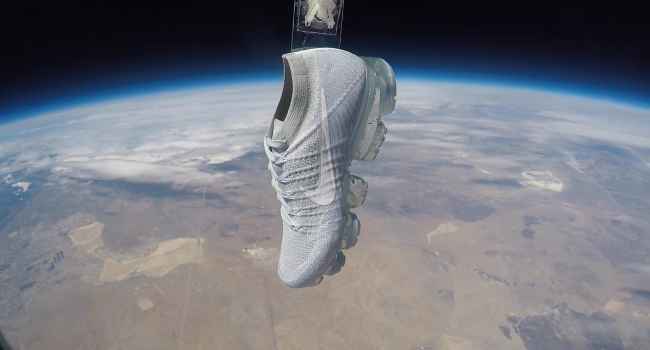 Como parte de una campaña de marketing pensada por la marca, el nuevo modelo de zapatillas Nike Air Max alcanzó la estratósfera atada a un globo meteorológico esta semana, en imágenes captadas por dos cámaras GoPro que parecerían haber sido hechas en un estudio profesional.
