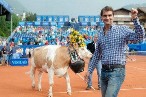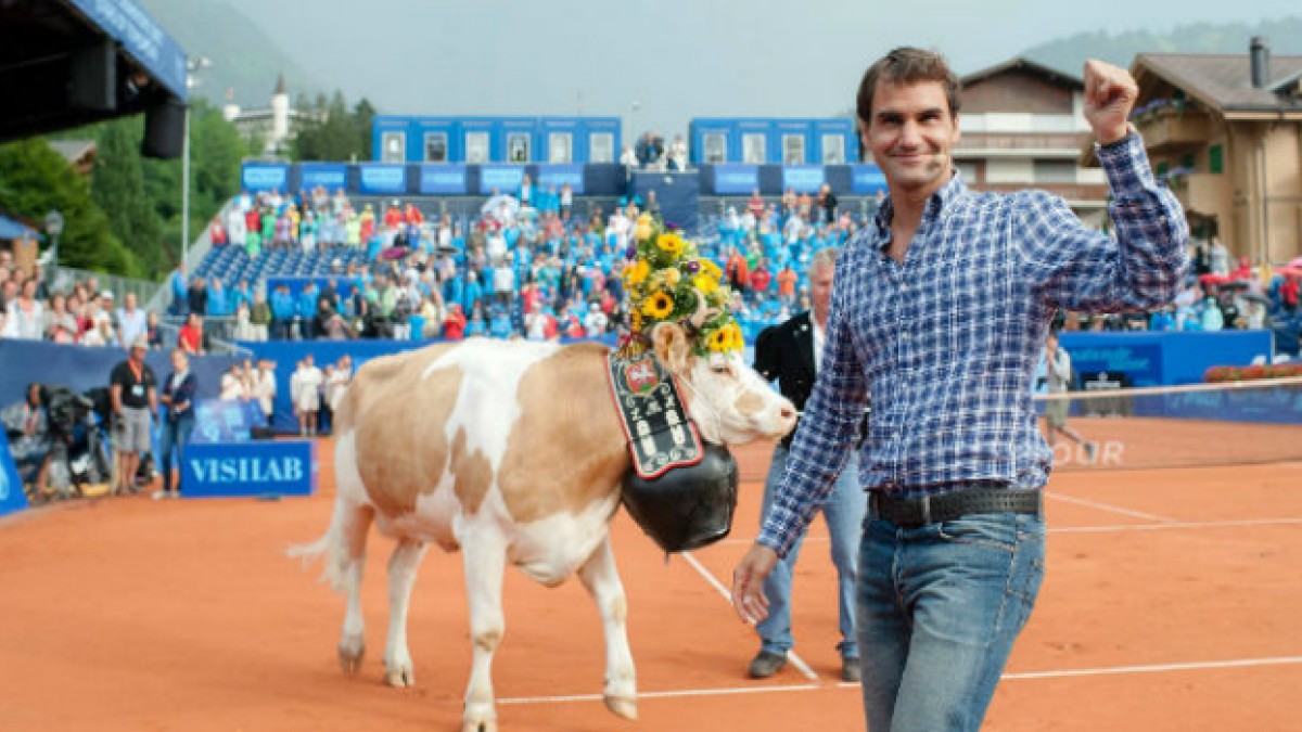 La imaginación no tiene limites, y más allá de que ya haya sucedido una vez, igualmente llama la atención. En Gstaad, los organizadores del torneo ATP le regalaron al suizo Roger Federer una vaca.