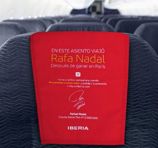 Iberia puso en marcha un acción llevada adelante por OgivlyOne que tiene como principal protagonista a Rafa Nadal, y en la cual los usuarios de la línea área podrán viajar en el mismo asiento que viajó el tenista luego de haber ganado alguno de sus tantos títulos.