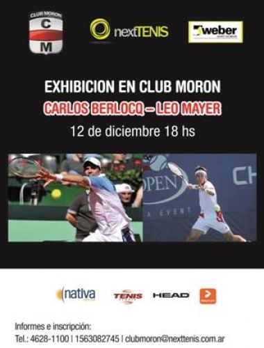 El próximo jueves 12 de diciembre a las 18 hs, dos tenistas argentinos top 100, Carlos Berlocq (Puesto 41° Ranking ATP) y Leo Mayer (94°) estarán brindando una exhibición con entrada gratuita en el Club Morón (Dirección: Irigoyen 138 – Morón -Sede Next Tenis) como parte del proyecto #HuellaWeber.