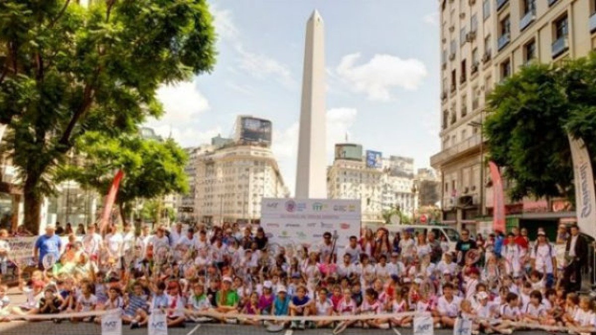 Se realizó la celebración del Día Mundial del Tenis en Argentina, en el Obelisco de la Ciudad de Buenos Aires, con más de 300 chicos que jugaron en las 30 canchas de Tennis10s montadas en Diagonal Roque Sáenz Peña.