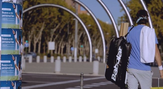 La campaña se llama #MovistarFanNadal y tan sólo se conoció un video difundido en las redes sociales donde el español pega afiches por las calles españolas invitando a sus seguidores a sumarse a la movida.