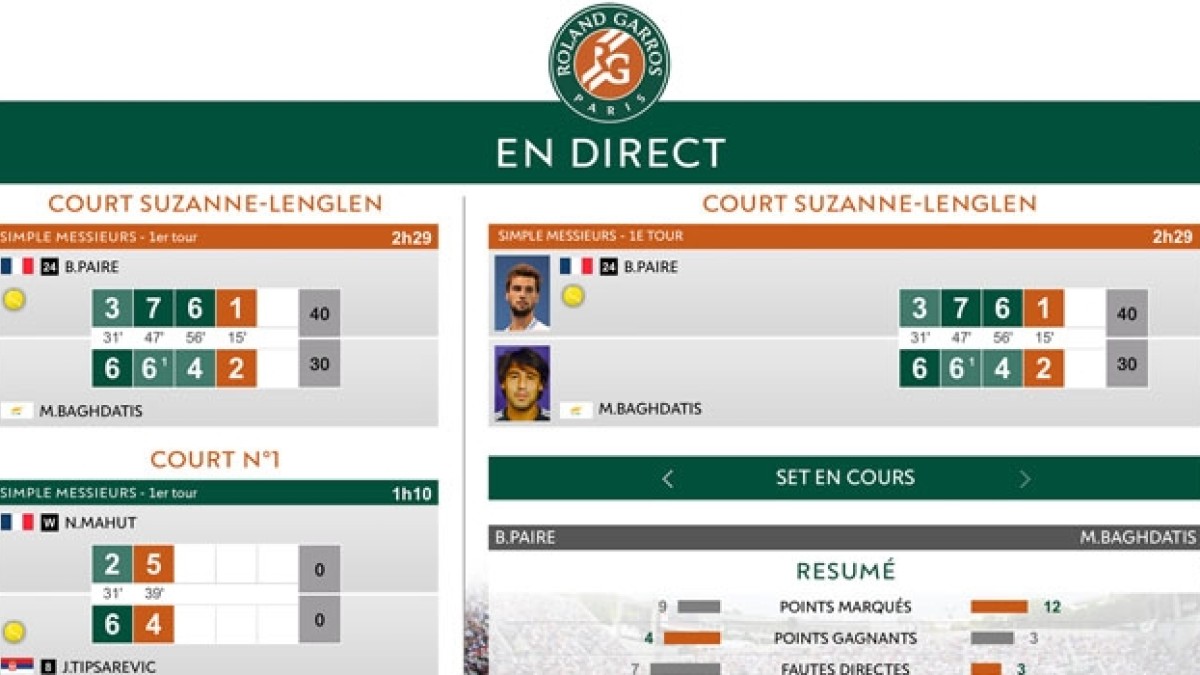 Además, incluye los servicios de Roland Garros Radio con noticias en tiempo real y la posibilidad de interactuar al instante tanto en Facebook como en Twitter.