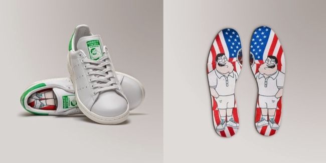 Con un gran juego de palabras, adidas y la popular serie animada American Dad lanzaron en conjunto una nueva colección de las famosas Stan Smith de la marca alemana. Es que el personaje principal de la serie estadounidense es homónimo del calzado, y ambas marcas decidieron unirse para reeditar uno de los mayores sucesos de ventas de las tres tiras.