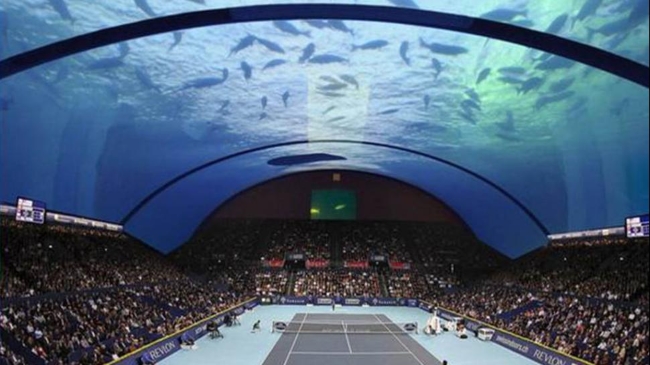 Un arquitecto llamado Kotala Krzysztof busca inversores que aporten entre 1.7 y 2.5 millones de dólares para su particular proyecto en Dubai: una cancha de tenis submarina con capacidad para 10 mil personas.