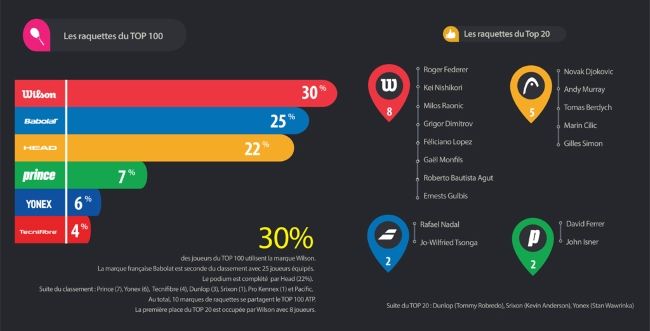 Por último, en las raquetas el podio está compuesto por Wilson (30%), Babolat (25%) y Head (22%).