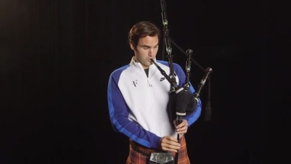 Con pollera escocesa y gaita, Federer promocionó un partido benéfico