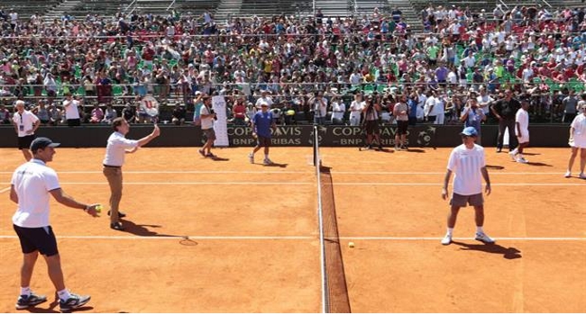Este lunes, parte de la delegación argentina que debutará por la Copa Davis frente a Italia realizó sus primeros entrenamientos en Parque Sarmiento, lugar en donde hará de local el equipo que viene de levantar la Ensaladera de Plata.