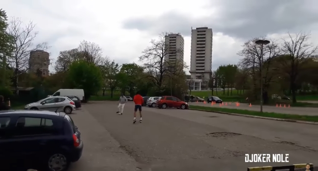 En el video se lo aprecia practicando en un estacionamiento, mientras algunos de sus aficionados lo filman.