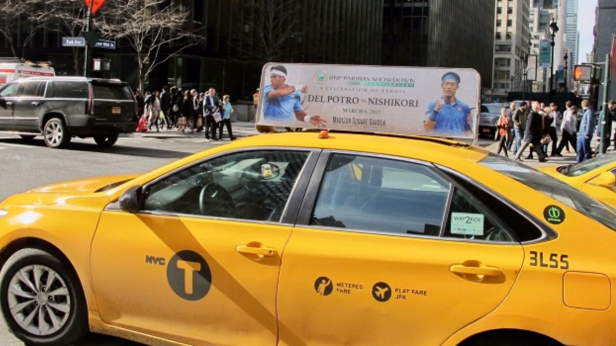 A días del regreso a las canchas del tenista argentino Juan Martín Del Potro, una curiosa imagen se hizo viral en suelo estadounidense al recorrer todo Nueva York en forma de publicidad en la mayoría de los taxis, el aviso previo al partido especial entre el tandilense y el japonés Kei Nishikori programado para el próximo 6 de marzo.