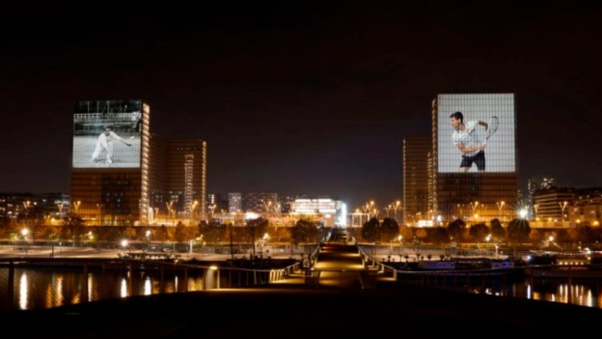 En la previa de lo que fue la final con derrota para el jugador serbio en el Masters 1000 de Paris, la marca que sponsorea al tenista decidió llevar a cabo una interesante intervención de uno de los edificios más característicos de la capital francesa.