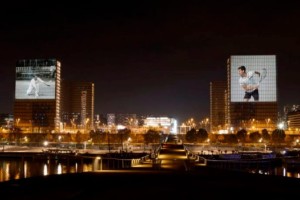 De esta manera la marca también aprovechó para celebrar el puesto número 1 del ranking ATP que consiguió Novak. Los vecinos del Parque de Bercy pudieron apreciar el espectáculo desde sus casas, ya que el “peloteo” se realizó con un jugador en cada uno de los edificios característicos de la biblioteca.