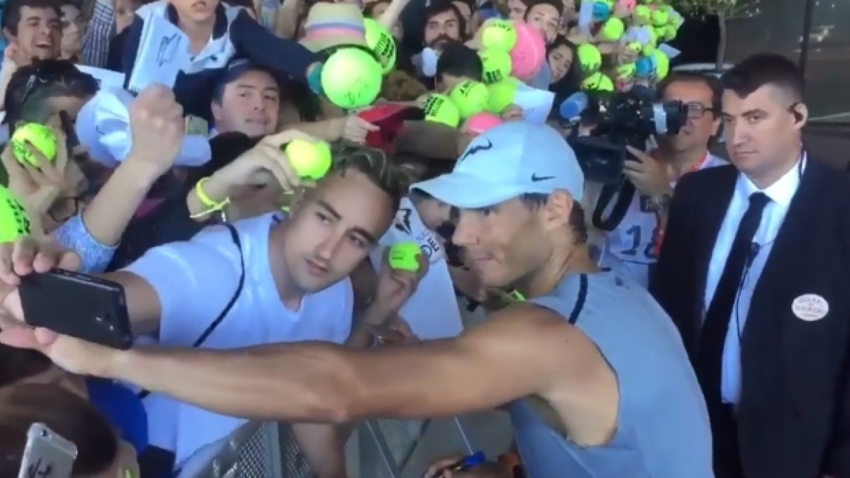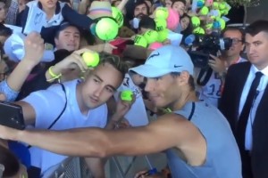 Solicitado por cientos de fanáticos admiradores del número 1 del mundo, Nadal no se negó a firmar ninguna de las pelotas que le extendieron, al mismo tiempo que accedió a un sinnúmero de fotos, de entre las cuales le tuvo que enseñar a un fanático a enfocar para que su selfie con él saliera más prolija.