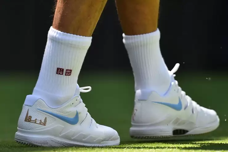 Lo único que resta definir es que sucederá con las zapatillas que usa Federer, ya que la marca japonesa no tiene modelos de calzado. Federer uso en el debut en Wimbledon un modelo especial de Nike. "Aún no tengo un contrato por mis zapatillas. Por ahora seguiré usando Nike. Ellos han demostrado interés en hacer un trato conmigo. Los lazos no están rotos allí. Tengo profundas raíces con Nike. He tenido una gran relación en los últimos 20 años. Pero todo está abierto. Estoy ansioso por ver qué zapatillas usaré en el futuro cercano", dijo el suizo en la conferencia de prensa post a su debut.
