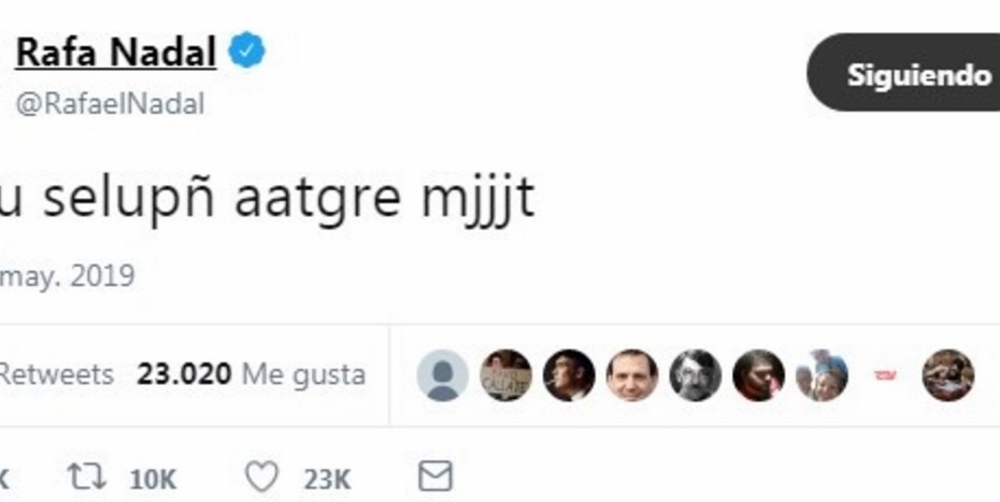 Previo a su debut en el Masters 1000 de Madrid, el número dos del mundo, Rafael Nadal, sorprendió a propios y extraños tras compartir un misterioso y confuso tweet en su cuenta personal que decía: “?Qeu selupñ aatgre mjjjt”.