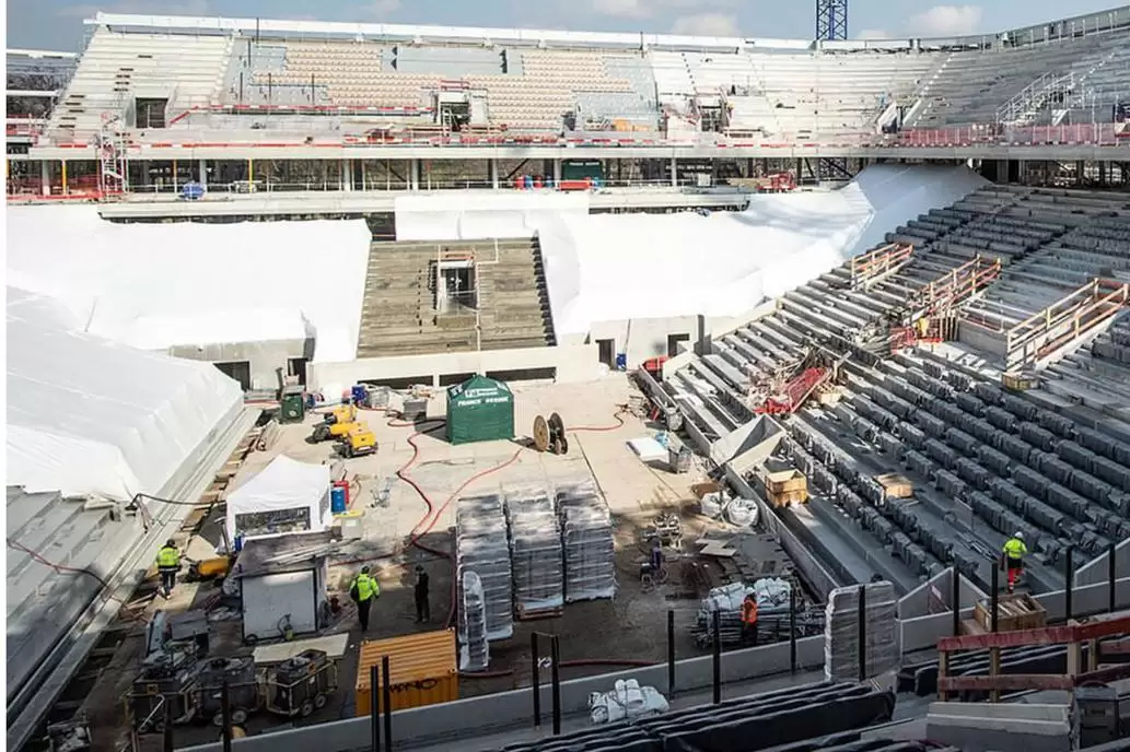En los meses previos las obras se han apurado y los obreros trabajan durante en distintos turnos para tener cuanto antes listo el estadio. Además de este nuevo recinto, las obras contemplan la construcción de un techo replegable sobre la cancha central y refacciones en las dos principales tribunas del Chatrier, las cuales fueron derrumbadas y vueltas a construir.
