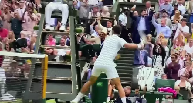 No se le ocurrió otra cosa que estrellarla, para romperla, contra uno de los palos de madera que aguanta la red. Prácticamente un sacrilegio en la 'Catedral' del tenis mundial, que condenó la acción del serbio con un unánime abucheo. El juez de silla de la final, el irlandés Fergus Murphy, actuó cantando el 'warning' correspondiente. No fue más allá de un aviso porque el 'warning' anterior que había aplicado a Djokovic tenía que ver con haber agotado el tiempo de saque de veinticinco segundos.
